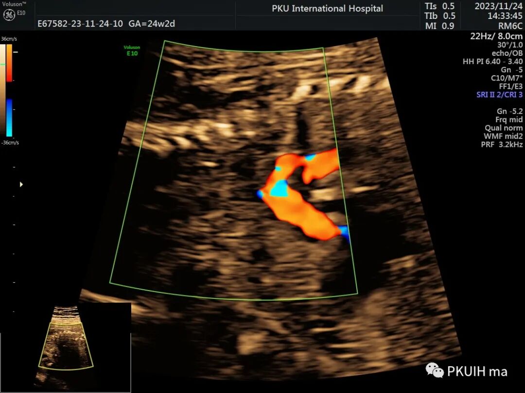 主动脉弓缩窄(CoA)产前常分为3类:1、孤立性CoA;2、CoA合并室间隔缺损;3、CoA合并其他心内畸形。根据缩窄位置与动脉导管的关系,CoA可分为导管前型和导管后型。导管前型主要累及主动脉横弓及峡部,表现为主动脉横弓长节段管状缩窄或峡部局限性缩窄,为产前超声筛查中的常见类型;导管后型为出生后发生的病变,主要累及动脉导管后方降主动脉,产前无法诊断。