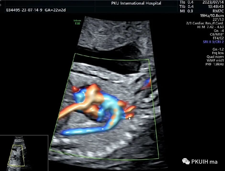 下面几张图是正常的主动脉弓长轴二维及血流图像