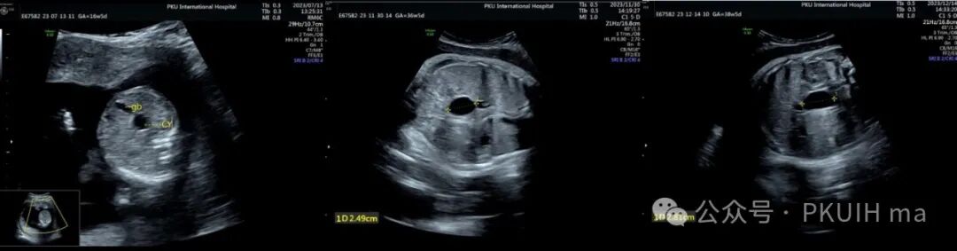 上图是孕16周发现的胎儿胆总管囊肿,在定期的随访观察中胎儿各项状况良好,胆总管囊肿变化不大,最后足月阴道分娩