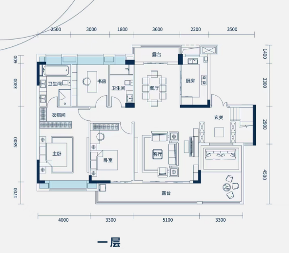 亮点是,南北双露台的设计,南向L型观景大露台+北向生活露台,采光、通风一下就拉满了。