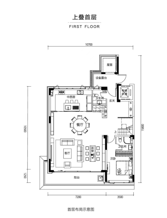 武汉城建明镜台的产品更像传统的别墅,首层是大客餐厨+大套间,约7米2的大横厅尺度感相当不错。