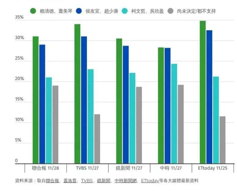 蓝白合破局后,岛内多家机构近期对三党组合进行民调,从走势看,侯赵配大幅提升,赖萧虽领先但只维持在三成多,柯文哲的民调反而略有下滑。