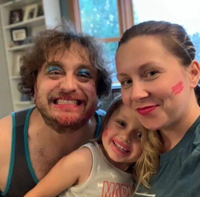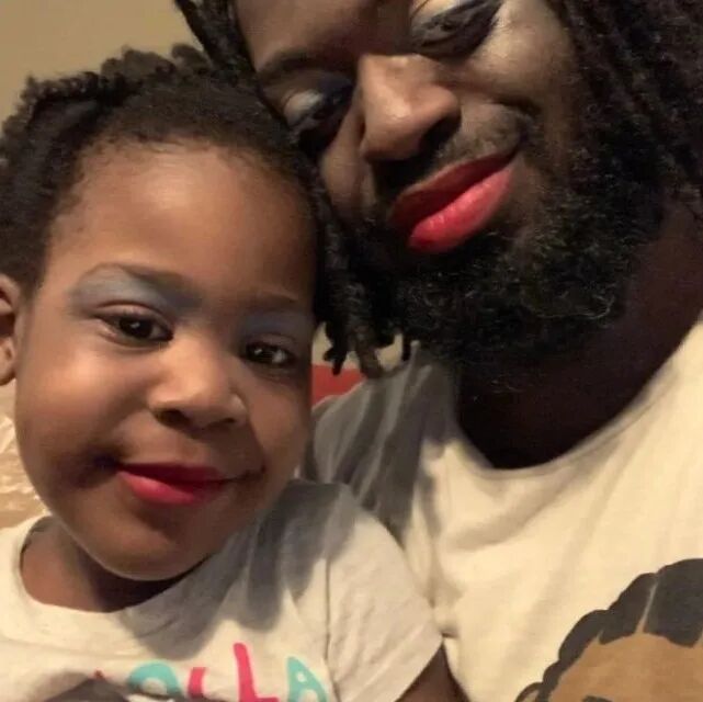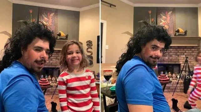 有的时候爸爸们会被女儿画上厚厚的红嘴唇,带上红色的围巾,看起来十分的妖艳,有的时候爸爸会被女儿带上手链,项链,耳环,那气质感觉跟贵妇一般。