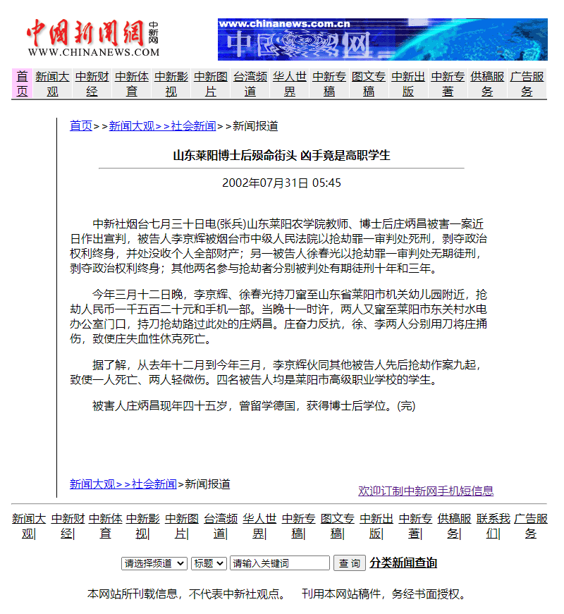 但是被抢劫身亡的男人叫庄炳昌,是莱阳农学院引进的专家学者。作为山东人的庄炳昌,毕业于吉林农业大学,后取得了中国农业大学博士学位,有德国交流学习经历,成为著名的农学博士后。其回国后在吉林农科院工作,先后发表过多篇论文,还成为享受国务院津贴的农学专家。