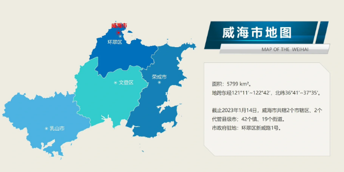 1913年,裁并府、州,实行省、道、县三级制,境内除租界区外,文登、荣成二县属山东省胶东道。1925年,分胶东道置东海道,境内属之。1928年,废道制,实行省、县二级制,文登、荣成二县直属山东省。1930年10月,威海卫收回,置威海卫行政区,直隶行政院。