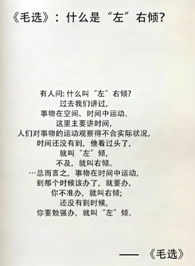 有时候看新中国时期文章,总是能看到“左倾思想”“右倾思想”这些用词。今天看到这个,短短几句话通俗易懂。瞬间明白了!