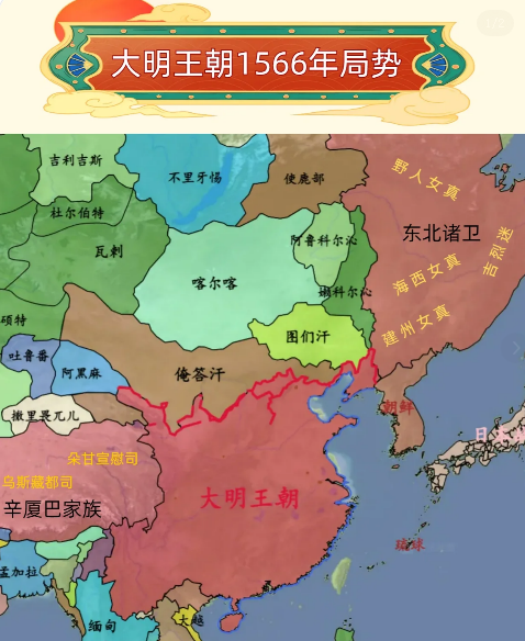 1566年,明朝正值明穆宗隆庆帝的在位时期(1567年之前是明穆宗的第五个年号隆庆元年)。周边国家的局势:1、北方边境:北方与蒙古部落的关系相对稳定,但边境小规模的摩擦和冲突仍然时有发生。明朝在此期间相对和平,没有发生大规模的边境战争。2、东北:东北的女真族开始逐渐兴起,但此时尚未形成对明朝的实质性威胁。不过,这个地区的女真部落最终会在后来的几十年内统一,建立后金,为清朝的建立奠定基础。3、西南:明朝与缅的交流已经开始,但是两个国家间偶尔会有冲突,特别是在边境地区。4、中亚:准噶尔盆地的一些部落可能会对明朝构成威胁,但1566年并没有记载有重大的事件发生。5、东亚:与cx半岛的关系相对友好,cx作为东亚的属国,其对外政策受到明朝的影响和控制。6、南洋群岛:明朝通过海上贸易与东南亚各国保持联系,对于南洋地区的影响力主要通过海上丝绸之路体现。7、中原和南方:内部来说,明朝在1566年并没有发生大规模的农民起义,但社会经济问题开始积累,特别是宦官势力的上升,这些问题间接的导致了明朝的衰落。隆庆帝在位期间,明朝的国力仍然相对稳定,他在位的几年中推行了一系列较为开明的政策,如放宽对海禁的限制,促进了贸易的发展。但是,他在位的时间很短(1567-1572年),隆庆帝去世后,他的儿子万历帝继位,随后的万历时期出现了更多的内忧外患。