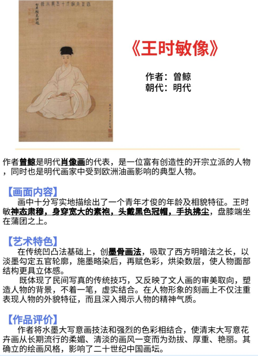 1️⃣恽寿平,清代著名画家。创常州派,为清朝“一代之冠”,擅画、诗文和书法。其画的特点潇洒秀逸,点蘸颜色敷染成画,讲究形似,山水画成就最高。代表作《廖汀羽藻图》等。2️⃣王翬,清代著名画家。创立了“南宗笔墨、北宗丘壑”的新面貌,其绘画以山水为主,融会南北之长,被称为“清初画圣”。代表作:《秋山萧寺图》。3️⃣ 王时敏,明末清初画家,出身高门世家,他主张摹古,笔墨含蓄,苍润松秀,构图变化不多。开创了山水画的“娄东派”,在当时威望极大。代表作:《仿山樵山水图》。4️⃣ 王原祁,清初著名画家。王时敏之孙。同属娄东画派,左右清代三百年画坛,是正统派中坚人物。代表作:《万寿盛典图》。5️⃣ 王鉴,明末清初画家,早年师承董其昌,于王时敏相交,也受其影响,募古居多,代表作有:《长松仙馆图》。6️⃣ 吴历,清初书画家。少时学诗于钱谦益,学画于王鉴、王时敏。他还是天主教徒,是位传教士,作画风格吸收了西法,作品取法自然,真实感强烈,代表作:《人物故事图》。
