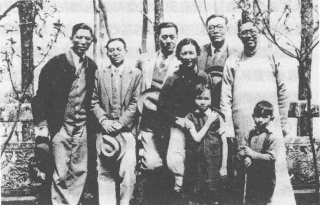 1938年,昆明西山华亭寺。左起:周培源、梁思成、陈岱孙、林徽因、梁再冰、金岳霖、吴有训、梁从诫