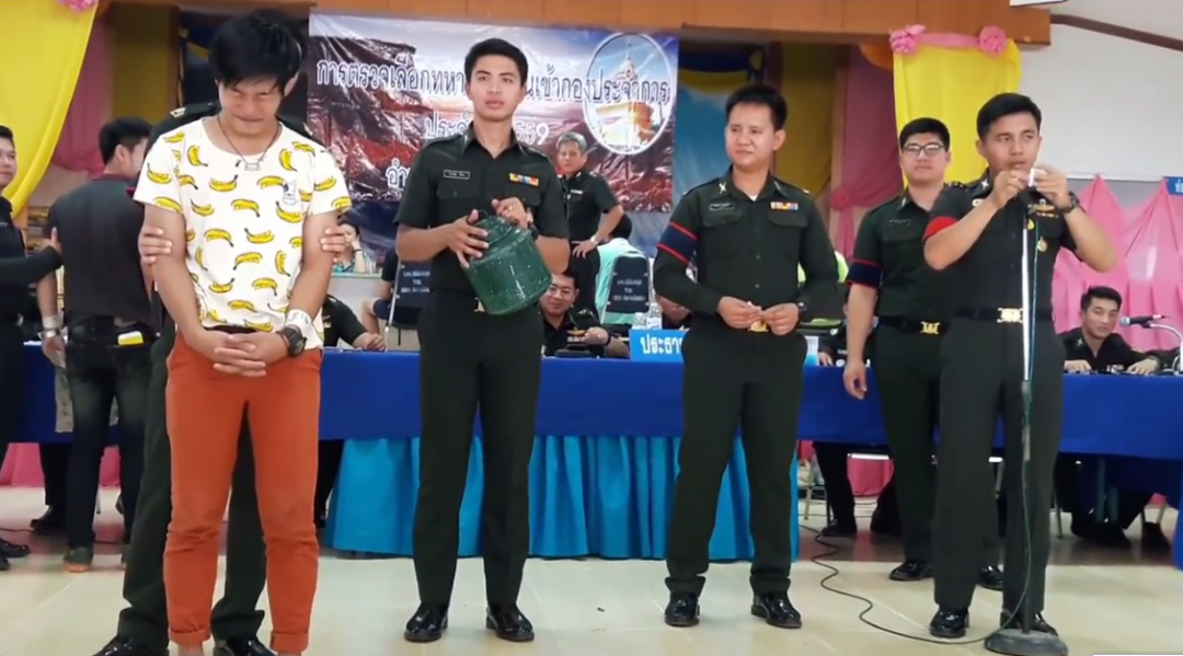 在我们的印象当中,可能服兵役,是血气方刚的场面,毕竟都是大老爷们,所以人们为国戍边的亲情还是比较昂扬斗志的,根据泰国的兵役法,凡是年满21岁的泰国男性都必须参加每年4月份的征兵抽签,而泰国的征兵场面则是让人一度难以理解这个神奇的国度,