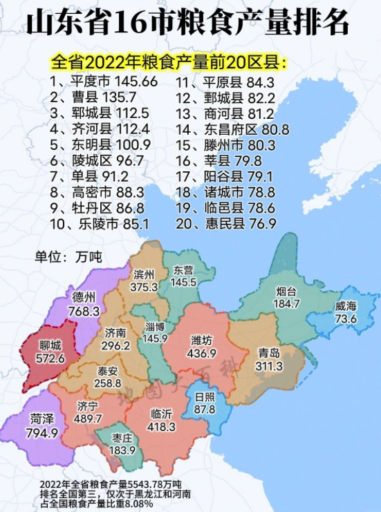 整体来看,黄河以北和鲁西南地区是粮食贡献大户。