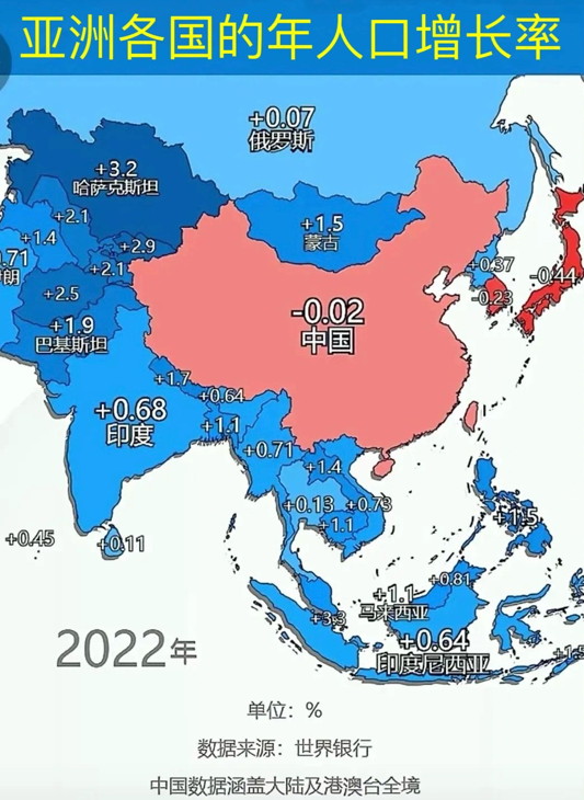最强的三个地方都是负增长的?亚洲这边气候合适还是很能生的,大多数还是正增长的人口,我们这么大的基数其实也没事。