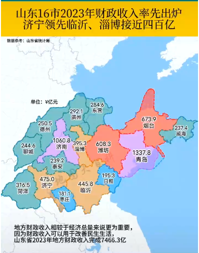 山东16市2023年财政收入率先出炉济宁领先临沂、淄博接近四百亿