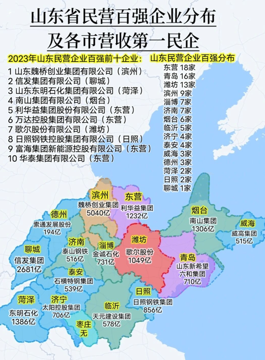 从山东民营企业100强分布来看,最大的赢家是东营市,上榜企业18家,排名第一。青岛市上榜企业16家,排名第二。潍坊市上榜企业13家,排名第三。作为山东省省会,济南市仅7家企业上榜,和淄博并列第五位,可谓民企荒漠。济南只有泰山钢铁集团、九羊集团、齐鲁制药、银丰投资集团、润华集团、山东东泰、大熊集团7家企业入围。其中泰山钢铁集团和九羊集团还是莱芜划入济南带来的嫁妆,如果只算原济南市只有5家入围,占比仅5%。 山东民企前20强济南民企无一入围。排名最高的泰山钢铁集团也仅仅排名第29。老济南民企排名最高的齐鲁制药仅仅排名第44,仅是中游水平。济南作为山东省会,民营企业还需努力!