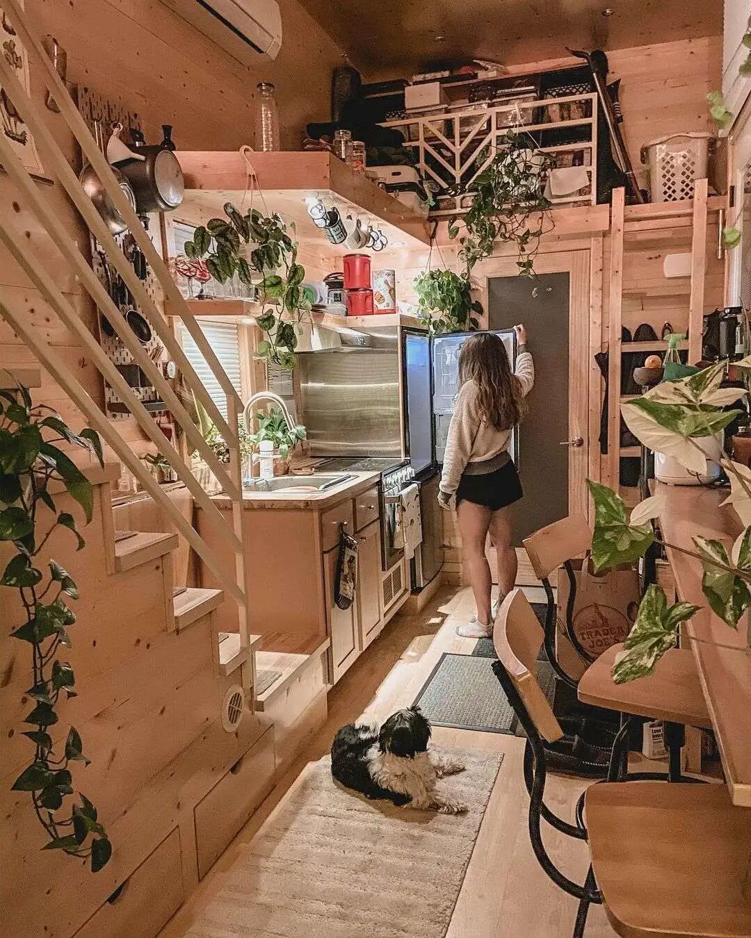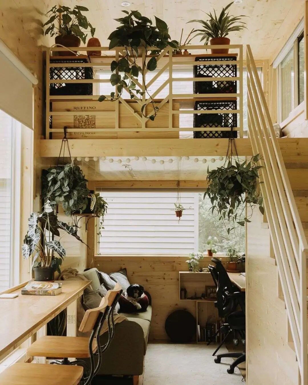 每一个区域都有着自己严格的功能划分在这个小房子里,他过着自己极简的生活方式。和自己的男友在这里过着世外桃源,一般的幸福生活,天气晴好,偶尔还会和男友一起出门遛狗,现在这样远离城市喧嚣,清静的生活方式,让她和男友,对于自己目前的生活状态都非常的满意,