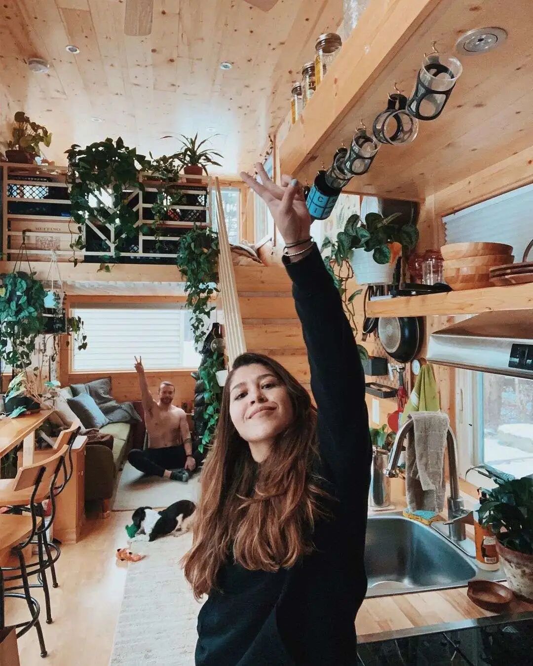 在旅途生活当中她的男友瑞恩一直陪伴在她的身边,让他坚定地想起了要过最简单生活的想法,回到美国之后的他经过了一年旅途,仿佛实现新生自己仿佛中的找到了生活的真谛,成为了一名专业的健身教练。在健身房里和自己的男友一起挥汗如雨,甜蜜而充实的过着每一天,他后来在森林里买了一栋可移动的小房子,房子虽小,但是十分明亮温暖。