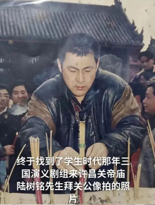 90年代,陆树铭给关公上香,他首次扮装,一照镜子,被自己吓一跳