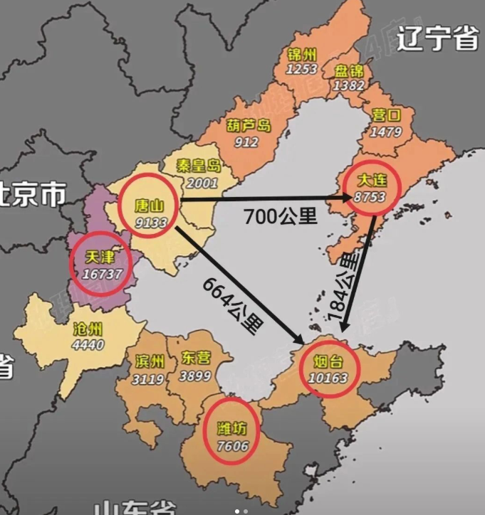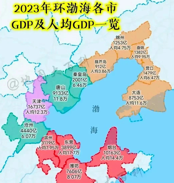 看了环渤海城市GDP地图,感触颇深!