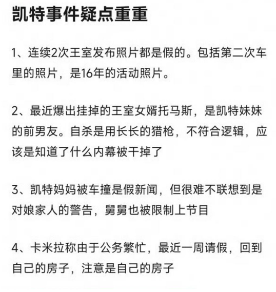 英国的🍉真是扑朔迷离,已经听了好多个关于凯特王妃现在状态的版本,很简单露个面或者拍个实时照片就可以解决的事情,怎么王室就宁愿p图也不让人出来