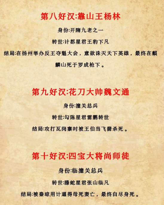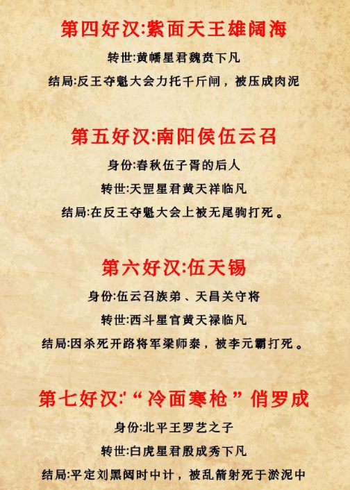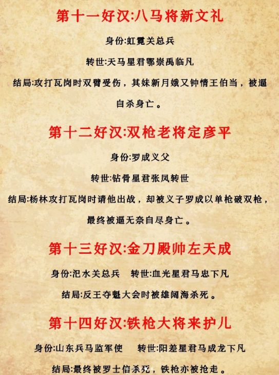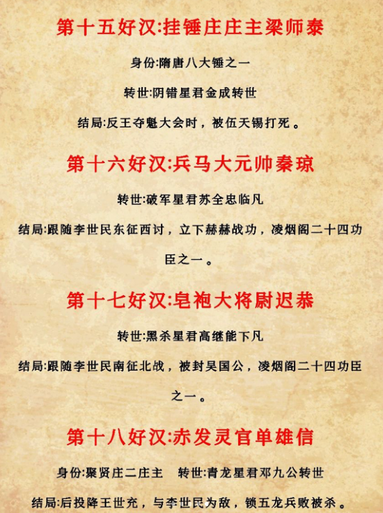 秦琼在此次排名中位列第十六,遗憾的是,程咬金并未能跻身其中。值得注意的是,除了秦琼与尉迟恭二人得以善终外,其余十六位均遭遇了不幸的命运,以悲惨的结局收场,实在令人扼腕叹息。⭕️这些不幸的将领中,有的因雷电劈击而身亡,有的因地雷爆炸而丧命,有的被千斤闸压成肉泥,还有的则在乱箭之中命丧淤泥之中。