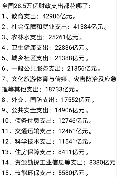 全国28.5万亿财政支出都花哪了