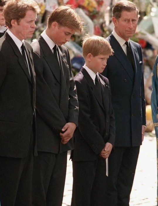 在母亲戴安娜的葬礼上,哈里王子还是个13岁的小孩,为了遵守王室的规矩,忍着没有哭,但是眼神里露出了仇恨的目光。