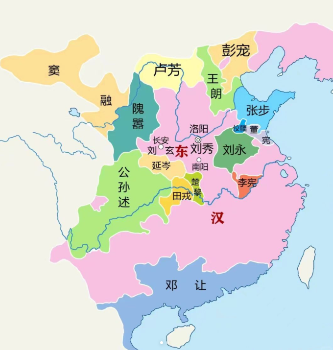 26年,更始帝出击占据汉中郡的延岑,公孙述趁机出兵北伐占领汉中、武都两郡27年,冯异攻击吕鲔、李育于陈仓,吕鲔、李育败逃汉中28年,公孙述进攻关中失败,退守汉中巴蜀29年,延岑、田戎被汉兵打败后都逃亡入蜀,投降公孙述,公孙述封延岑为汝宁王,封田戎为翼江王30年,李通率领侯进、王霸等击败割据汉中的延岑。公孙述派兵援救延岑,被击败31年,占有陇西、金城、武威、张掖、酒泉、敦煌等郡的隗嚣向公孙述称臣,公孙述封隗嚣为朔宁王32年,光武帝刘秀遣诸将进攻隗嚣,公孙述遣李育率部援救隗嚣,李育全军覆没33年,公孙述遣王元、环安拒守河池,又遣田戎、任满、程泛率军下江关,打败汉将冯骏,攻占巫、夷陵、夷道,据守荆门、虎牙34年,落门战役,刘秀平定隗嚣集团,隗嚣部将王元投奔公孙述