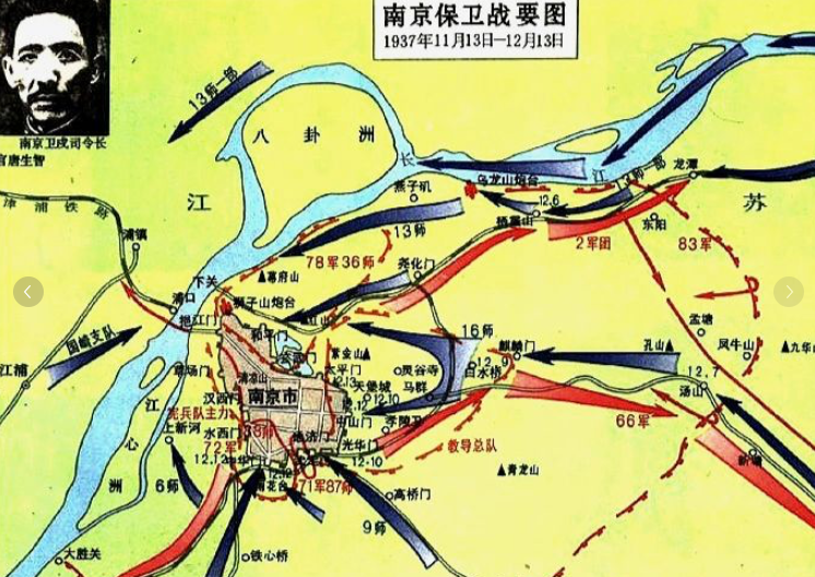 1937年12月12日晚上,此时的唐生智已经开过会传达完撤退命令,自己坐船开溜了。所谓兵败如山倒,此时真的是一点不假,南京守城部队大部分开始无秩序拥挤撤退。