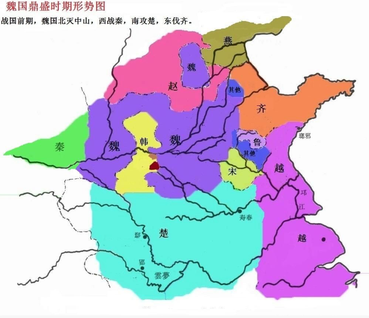 前364年,魏惠王六年迁都大梁(今河南省开封),国号也称梁。前334年魏惠王和齐威王在徐州会盟,互相承认对方为王,史称“徐州相王”。在以后的战争中,魏国“东败于齐,西丧秦地七百余里,南辱于楚”,公元前225年,为秦国所灭。