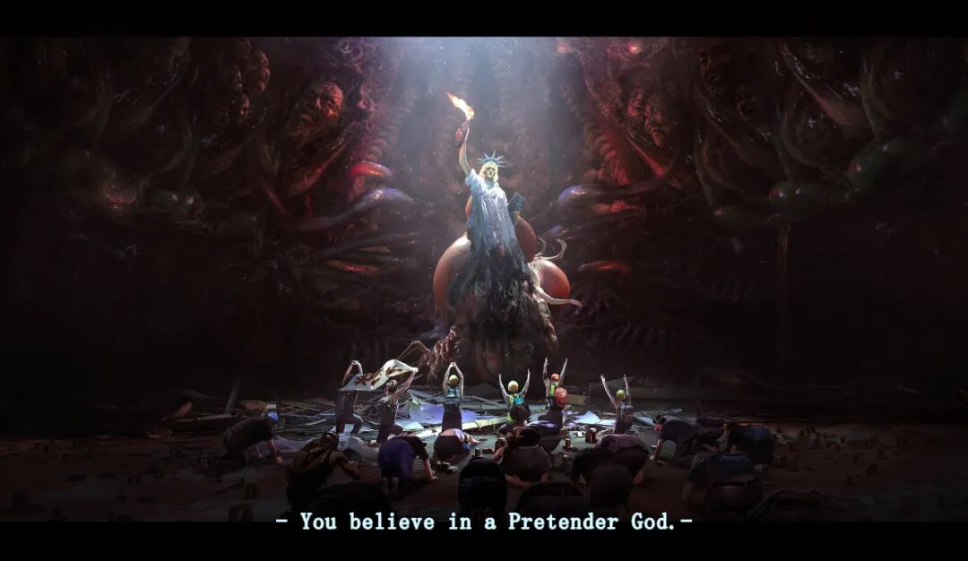 画面的内容是南京大屠杀的纪念碑砸烂了日本东京靖国神社,而靖国神社之前跪拜的日本军国主义的遗孤们,则齐刷刷地跪在了地上,向着纪念碑致敬,也表达了乌合麒麟,希望日本军国主义遗留的思想能够正确的认清现实,向着世界和平的夙愿前进,也希望他们真正的向中国人民作出道歉,为自己曾经犯下的错误深刻忏悔。
