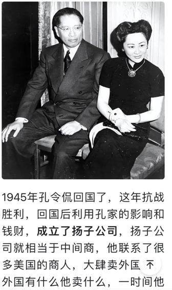 扬子公司成立于抗战胜利以后,实际控制人是孔令侃,他是时任财政部长孔祥熙和宋霭龄的长子。进口单据显示1946年6月20日由纽约装船,8月6日到达上海,是10箱女式塑料雨衣,扬子公司的地址是北京路131号。