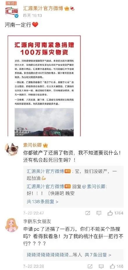 多年以来,这个家小业小的国产运动品牌,捐款了2亿元的物资,除了鸿星尔克之外,身处郑州中心的蜜雪冰城,也是捐出了2,200万,奇瑞汽车每一辆车只赚16块钱,却捐款3,500万,辽宁方大集团向湖北捐了两个亿,向河南捐了一个亿加1亿的物资,申请过破产的汇源果汁,也是为灾区贡献自己的力量,每一次国家有困难必定挺身而出的胖东来,甚至在这次灾情期间,老板带着员工亲自到一线去救灾。