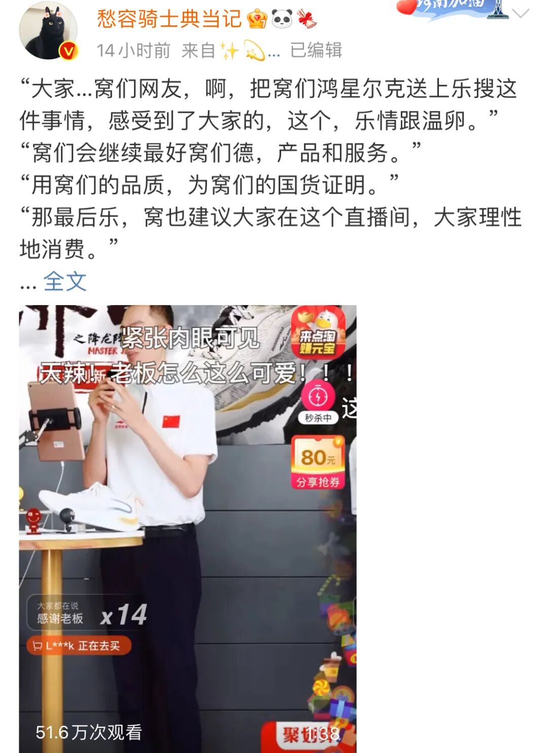 直播间里更是吸引了数以亿计的粉丝们前来支持,鸿星尔克的老板骑着共享单车来劝大家理性消费,网友们却霸气回怼你都野性捐款,我们为什么要理性消费,我们就是要野性消费。许多粉丝让红星尔克拿出最贵的鞋,结果最贵的才300块钱,相比较而言,李宁和安踏的鞋现在动辄就要上千元,鸿星尔克的鞋真是便宜到极致,所以鸿星尔克的鞋被粉丝们买到断货。