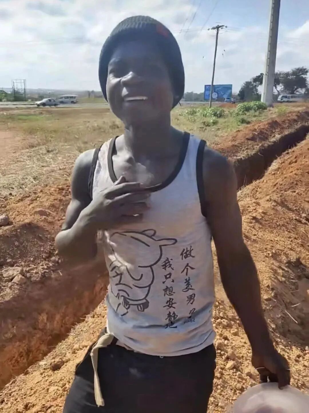这其中包括一些行业的工作服,比如美团外卖或者是饿了么的T恤衫,包括一些时尚潮流的广告语,我只想安静做个美男子,做个俗人,还有齐鲁证券,还有印有中国的两个汉字的衣服,都在这里被人们重新购买之后成为了非洲时髦群体眼里的抢手货,因为这些衣服都具有着比较亮丽的颜色,也为这些非洲黑色人群的躯干增添了一道绚丽的色彩。