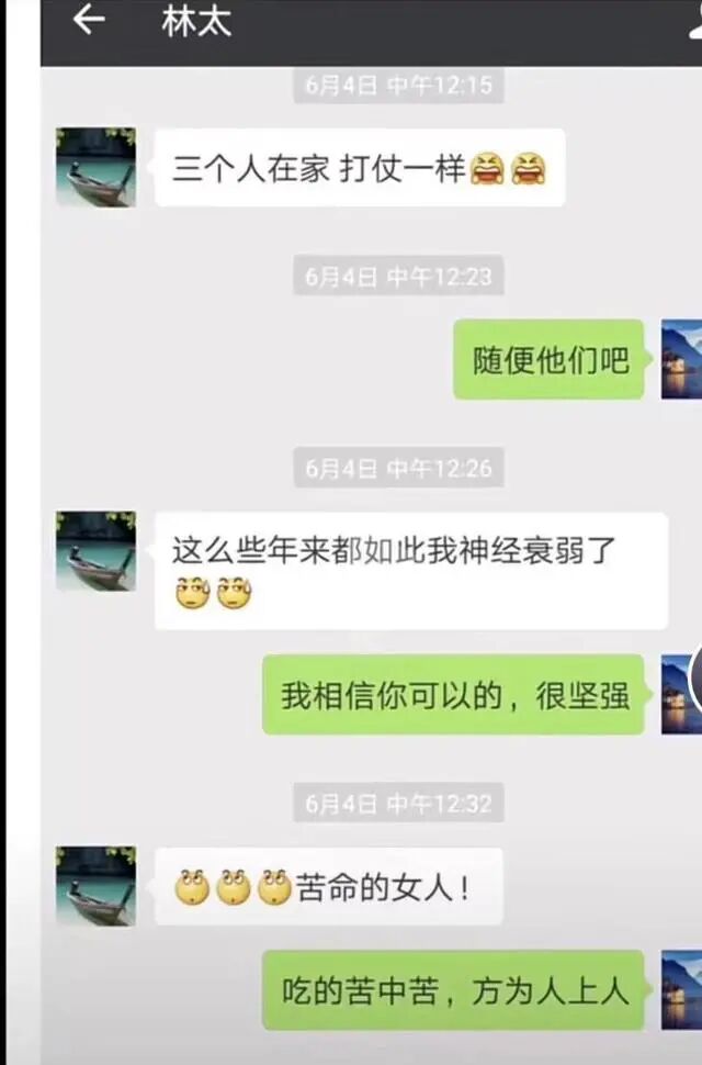 自己没有嫌弃您身边原生家庭的贫困,并且在自两个人的事业风生水起之时,自己放弃事业,选择家庭,一个人在家里照顾三个孩子,但是林生斌却丝毫没有。体谅妻子在家里照顾孩子的不容易,并且送他一句吃得苦中苦,方为人上人,在杭州纵火案,事发当晚,林生斌还和现在的妻子小乐进行了长达20多分钟的通话,在纵火案半年之后被网友拍到和女性手牵手逛街,又被拍到和另一位女生在澳大利亚的拜伦湾跳伞。