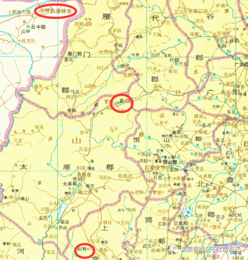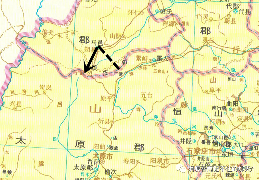 我们看下地图,霍人在太原郡东北角的句注山南麓。