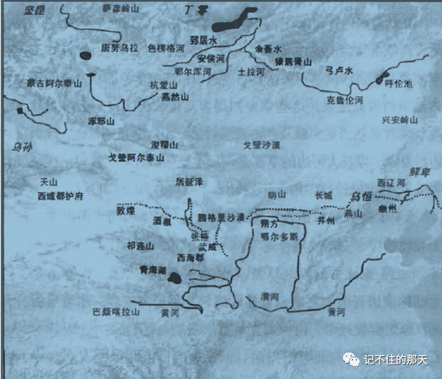 上图是根据西汉末年到东汉年间的行政区划绘制的匈奴及其周边游牧区域的地图。