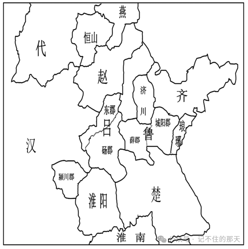 我们先来看下上面的简单地图,这是高后八年(公元前180)年时的关外王国分布图。
