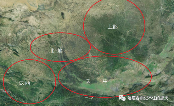 我们看下地图,陇西、上郡和北地三个地方,都是关中的周边。