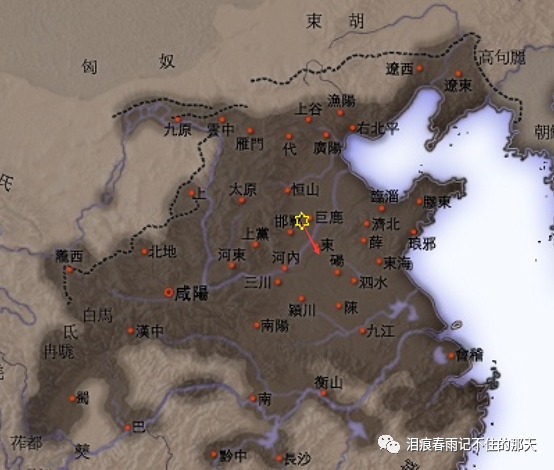 我们看下地图,黄色星星就是王离的位置,巨鹿是赵国的地盘。
