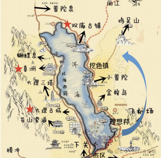 Day2 洱海环海游(大理古城→才村→喜洲→蝴蝶泉→桃源码头→双廊→挖色镇→小普陀→金梭岛→天龙八部影视城→大理古城)