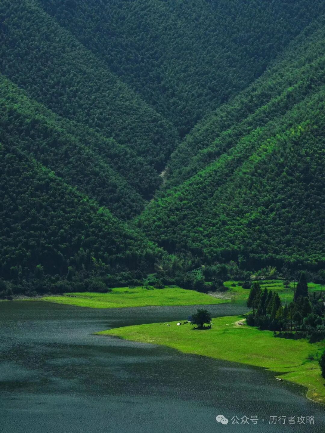 这里宛如一颗镶嵌在群山中的翡翠吊坠,碧蓝的池水与周围的群山相映成趣。