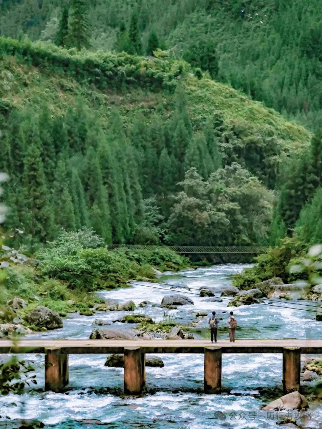 继续前行,我们来到了被誉为“川版喀纳斯”的复兴村。这里的石桥、森林、溪流构成了一幅幅绝美的画卷。随手一拍,都是大片的感觉。