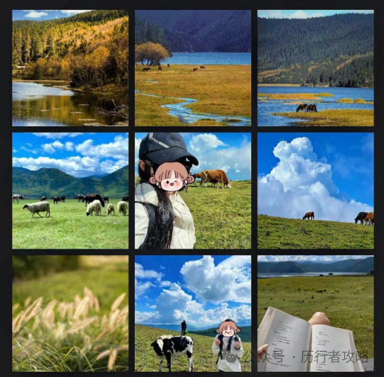 逛逛月光广场,走进独克宗古城,去转动世界上最大的转金桶,中午到纳帕海伊拉草原、走在辽阔的草原,看成群的牛羊,远处的村庄,云朵仿佛棉花糖一般布满天空。