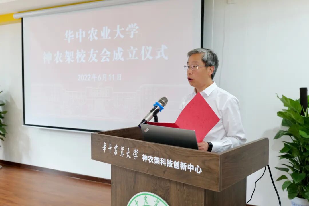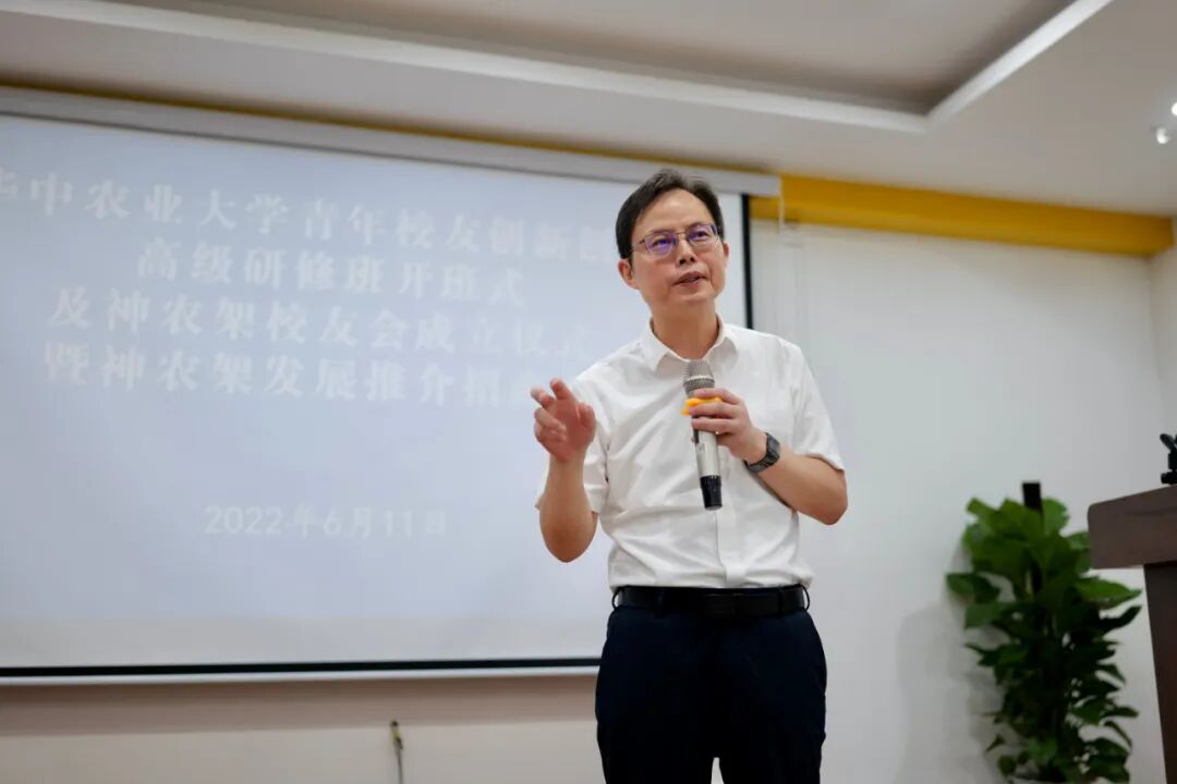 仪式在全体校友齐唱华中农业大学校歌中拉开帷幕。李向东从学校概况、校区合作、校友会概况、校友会工作回顾等四方面介绍了学校及校友会工作情况。杨仁海介绍了校友终身学习支持计划及“青创班”相关情况。