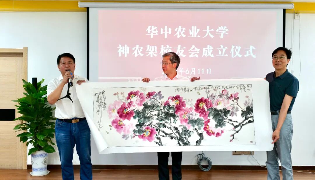 神农架校友会首任会长黄宏波表示,一定履行好会长职责,当好联络员和服务员,不辜负母校和广大校友的期望,始终坚持“情感共同体、价值共同体、发展共同体”的定位,为校友服务、为母校服务、为神农架林区经济社会发展服务,把神农架校友会建设成为校友共生共荣的发展平台和精神家园。十堰校友会会长田焕银对神农架校友会的成立表示热烈祝贺,期待母校早日建设成为特色鲜明的世界一流大学,并向神农架校友会赠送了精美画作《花开富贵》、《写意花鸟》,以此祝贺神农架校友会正式成立,并祝福神农架校友会越办越好。