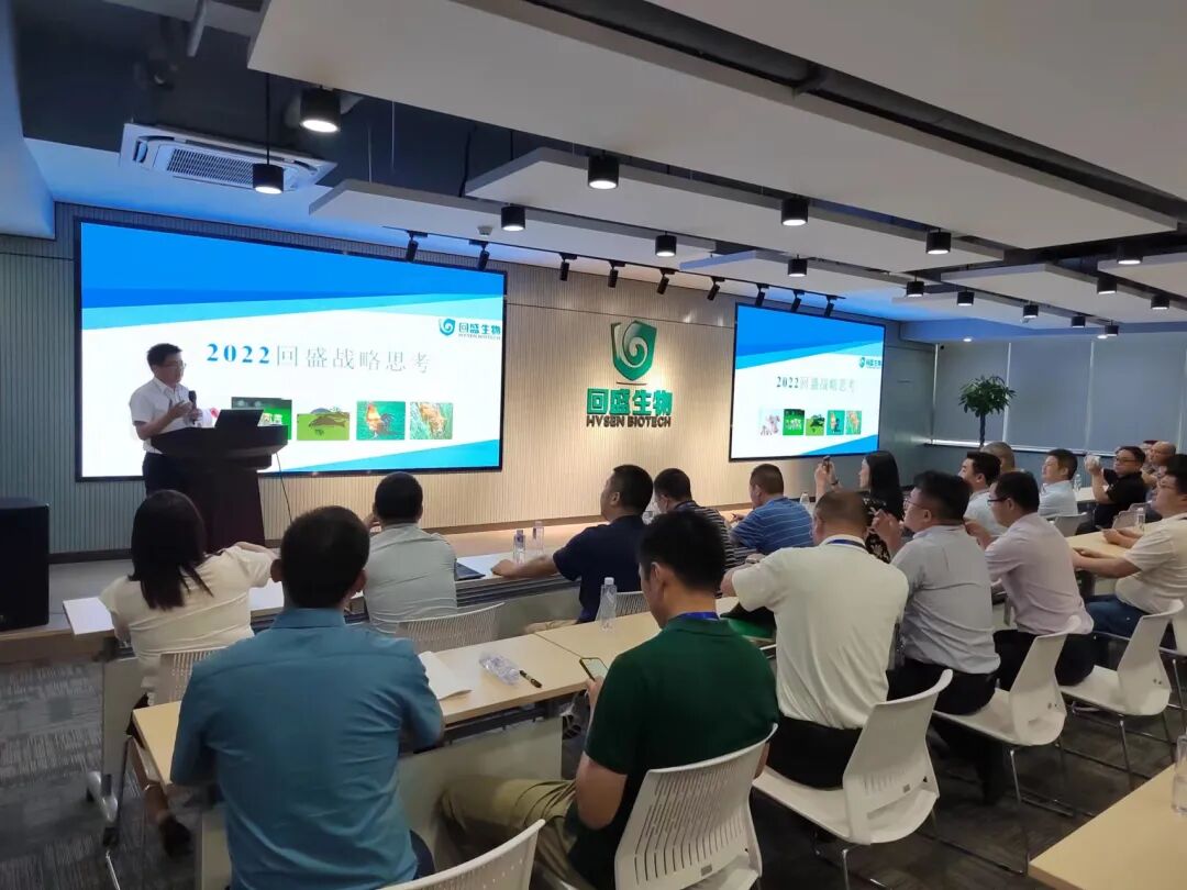 回盛生物常务副总经理刘洁、副总经理黄金斌分别就《双疫情背景下回盛生物的公司战略决策及执行》《回盛生物营销渠道建设思路》两个主题进行了发言。