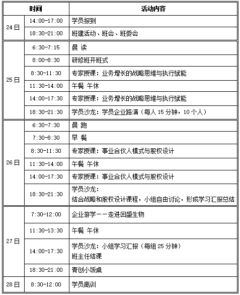 此次木兰班日程安排如下: