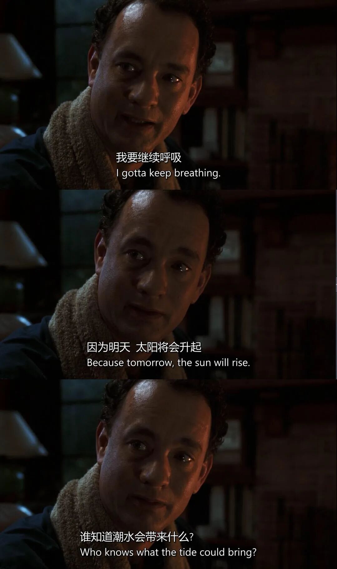 而电影《荒岛余生》正是通过将人们面临的生存困境具体化,再借助汤姆·汉克斯的传神演绎,向我们传达了一个深刻的道理: