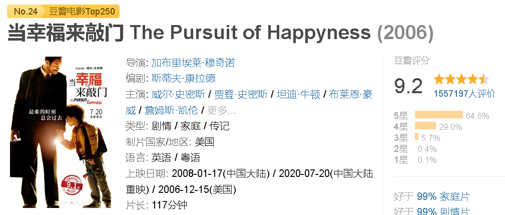2006年,一部改编自克里斯真实经历的电影《当幸福来敲门》震撼上映,成为了无数人在人生低谷时的精神支柱。